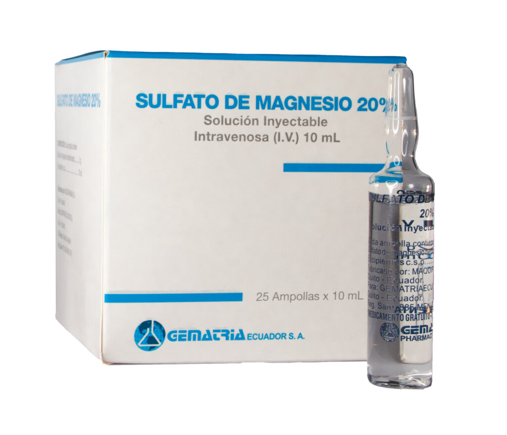 Indicado para crisis convulsivas en preeclampsia/eclampsia, hipomagnesemia, parto prematuro y tratamiento de la taquicardia ventricular “Torsades de Pointes”.